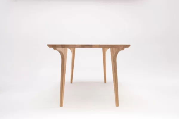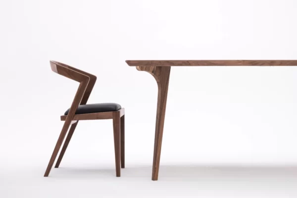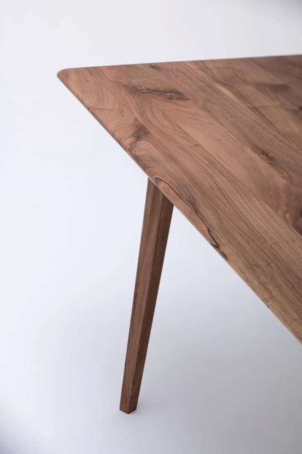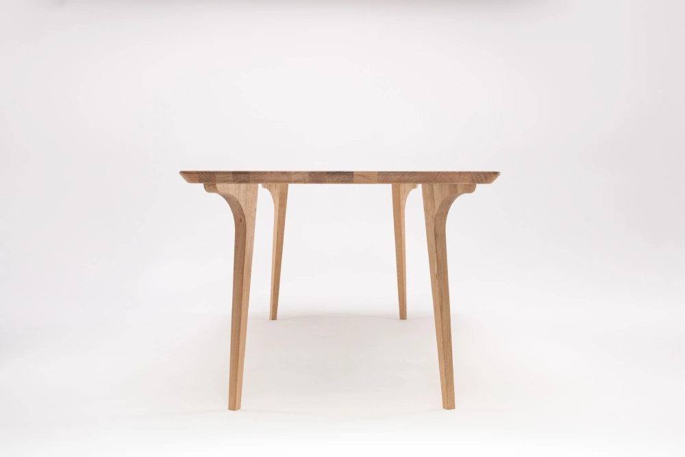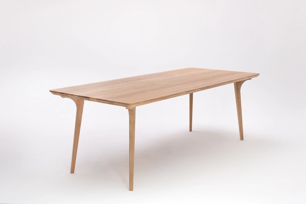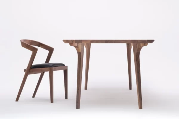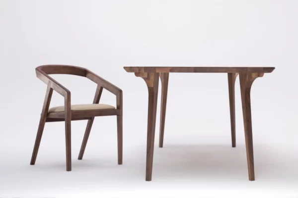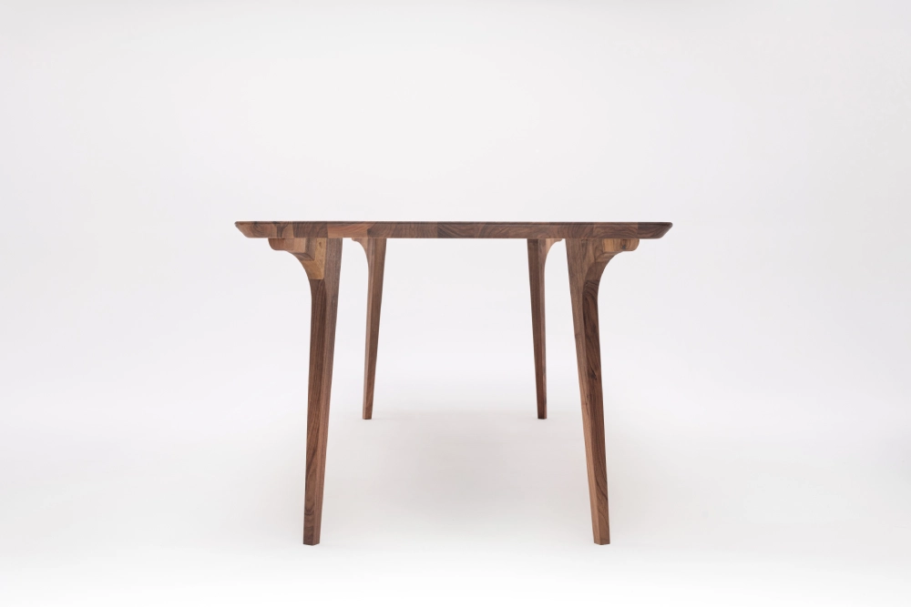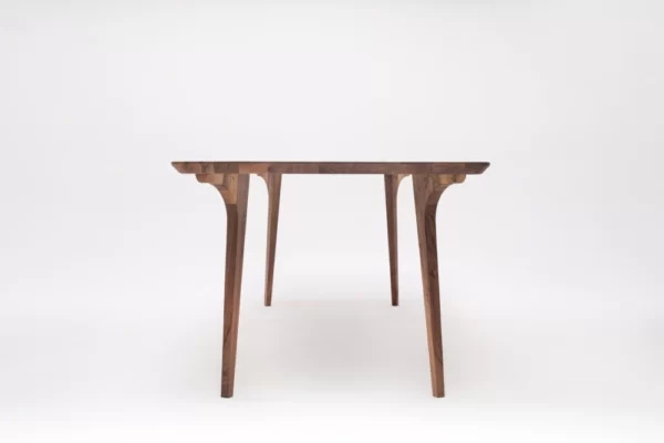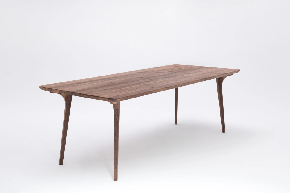 Our team of craftsmen hand-pick the solid hardwood used to make each Yorick mid-century modern dining table, selecting only boards with beautiful figured grain. The wood is finished with non-toxic, organic oils that enhance its natural beauty. The corners of the tabletop and the tapered legs are gently rounded to create a soft and tactile experience. The Yorick table is a testament to the combination of Japanese and Scandinavian design principles and can be paired with our Marina or Nuda chairs.