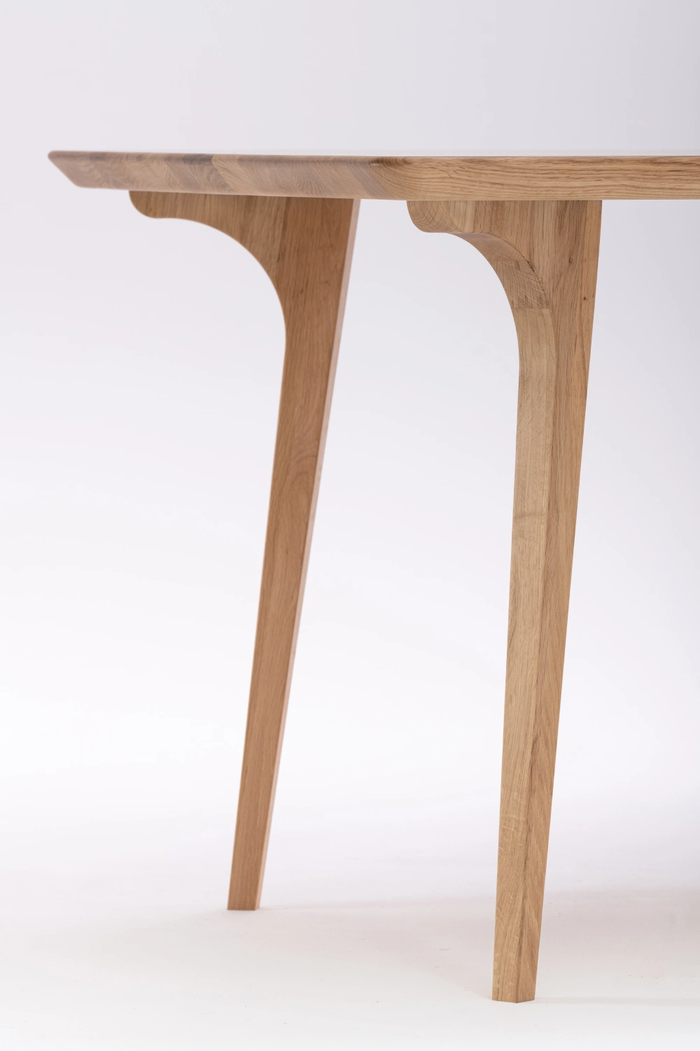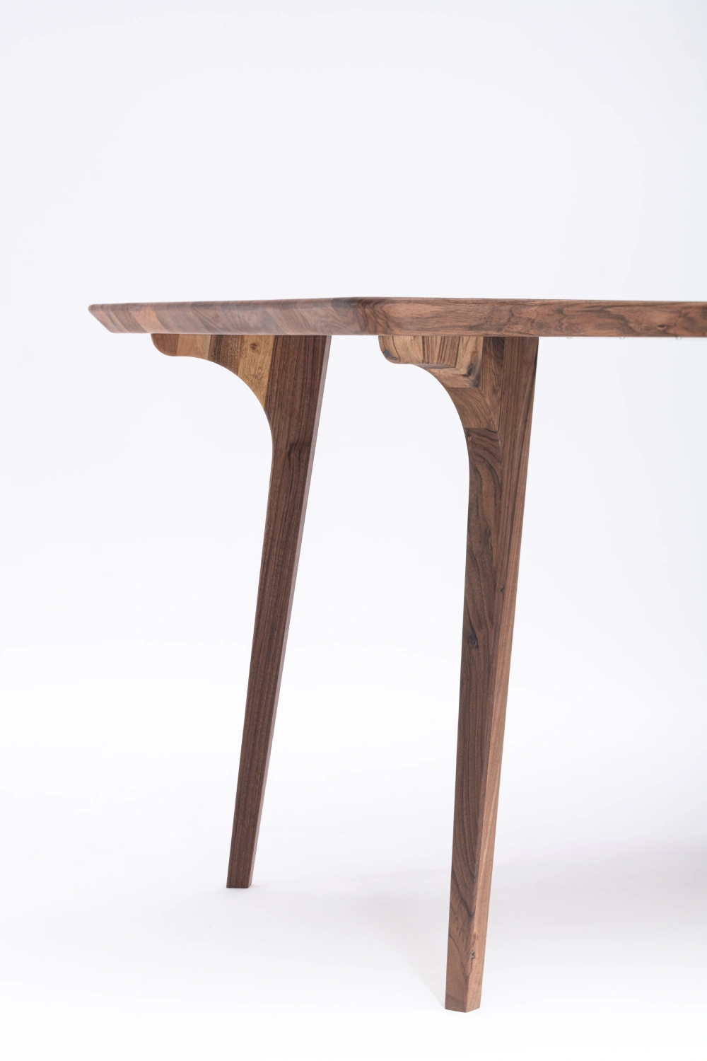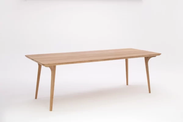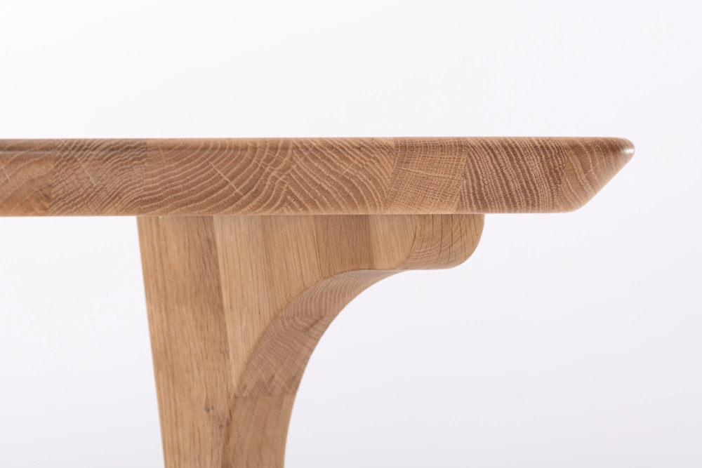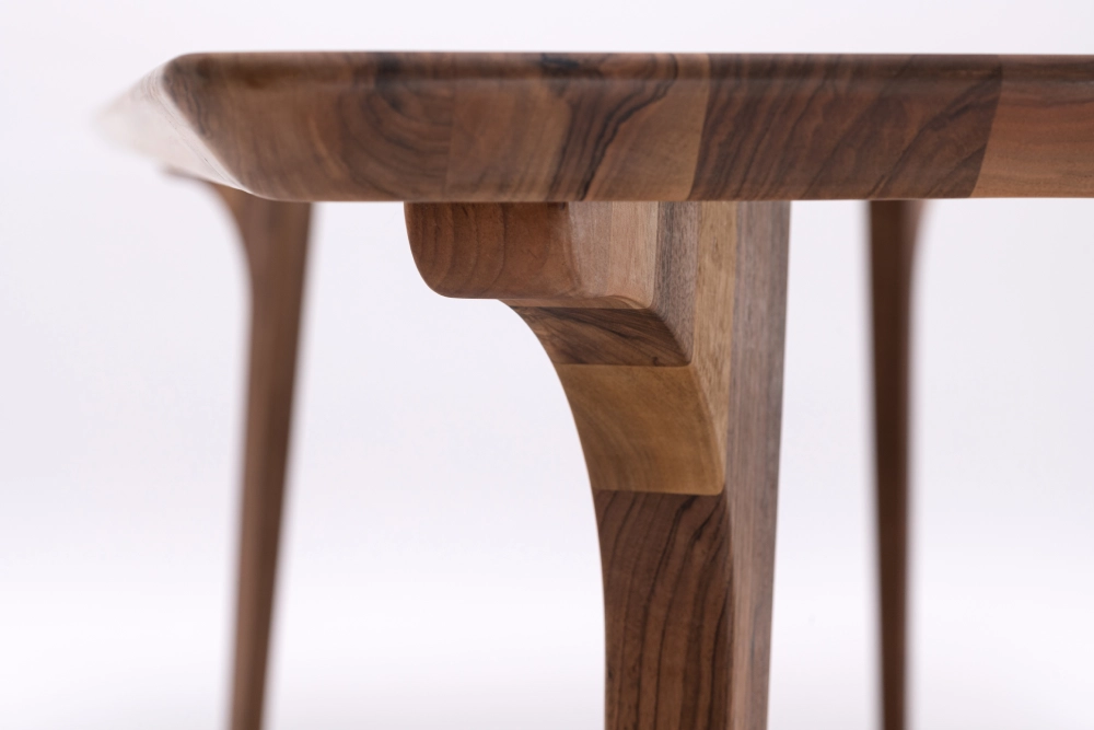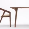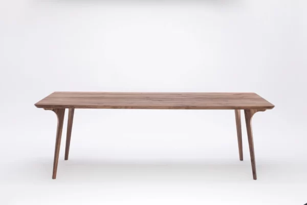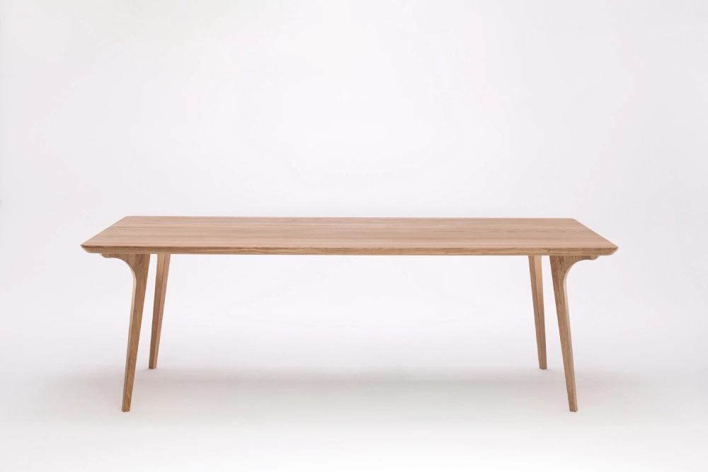 Our team of craftsmen hand-pick the solid hardwood used to make each Yorick mid-century modern dining table, selecting only boards with beautiful figured grain. The wood is finished with non-toxic, organic oils that enhance its natural beauty. The corners of the tabletop and the tapered legs are gently rounded to create a soft and tactile experience. The Yorick table is a testament to the combination of Japanese and Scandinavian design principles and can be paired with our Marina or Nuda chairs.